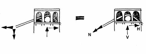 always, the horizontal reaction is 220,000 kips. The axial force is found from these values as